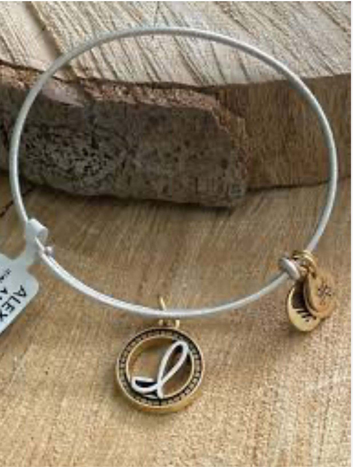 Personalize your jewelry with initials! Choose your own or give a personal gift to someone you love. Each charm is beautifully stamped with script letters creating an elegant and classic look. Each charm hangs from Alex and Ani’s Expandable Wire Bangle in a Rafaelian Silver Finish.